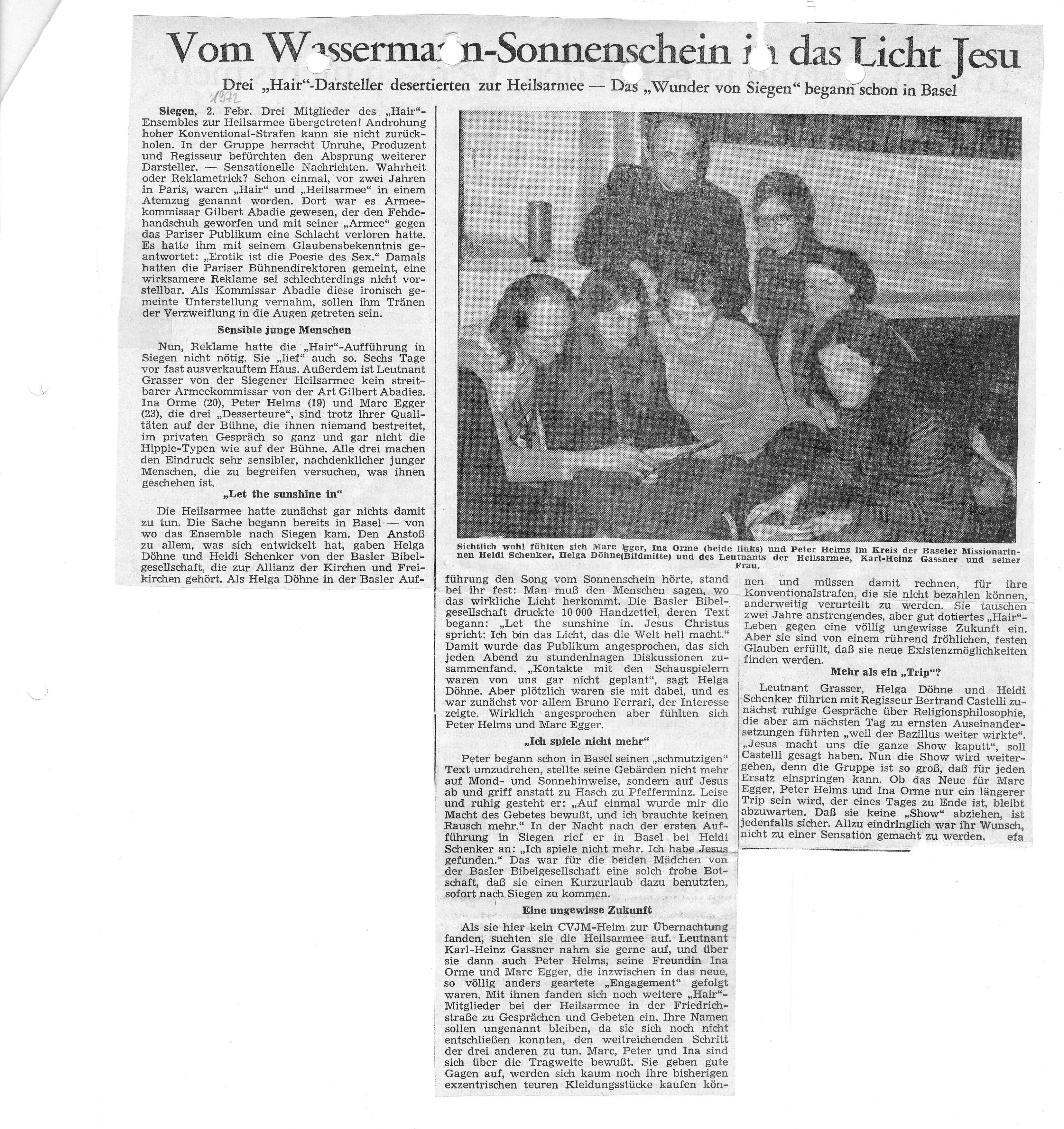Geschichte lebt lautete unlängst die Überschrift eines Artikels in der Siegener Zeitung zu einem lokalen Heimatmuseum, aber als Einstieg in diese Serie ist wohl besser die Überschrift geeignet: Das Wunder von Siegen. Das ist fast 50 Jahre her und damit historisch und museumsreif, aber wenn man die Geschichte erzählt, fängt sie an zu leben Man schrieb das Jahr 1972. Das international besetzte Rock-Musical Hair gastierte Ende Januar/Anfang Februar sechs Abende lang in der stets ausverkauften Siegerlandhalle zur Freude der "Flower Power"-Anhänger und Gesellschaftsveränderer und zum Ärger der konservativen Bevölkerung. Die frommen Kreise verteilten Traktate unter den auf Einlass wartenden Besuchern, heftige Diskussionen waren die Folge. Und dann geschah das Unerwartete und Unvorstellbare: Am 2. Februar 1972 berichtete die Siegener Zeitung vom Ausstieg der Hair-Darsteller Markus Egger, Ina Orme und Peter Helms. Die drei fanden Asyl in der Heilsarmee in der Siegener Friedrichstraße, das gutbezahlte Tourneeleben hatte ein jähes Ende gefunden und keiner der Künstler wusste, wie sie die ihnen angedrohten Konventionalstrafen bezahlen sollten. Markus Egger gründete später in Hannover die Band Semaja. Den Artikel der Siegener Zeitung kann man in der GospelNetwork-WebSite nachlesen; die Abbildung ist mit einem Link versehen: ![]() (Redaktionelle Ergänzung: Bericht über ein Treffen der "Hair-Aussteiger" in 2013 www.ojc.de/salzkorn/2013/advent-erwarten/haarige-umkehr-interview-mit-hair-saenger-peter-helms) Die Siegerlandhalle bot damals bestuhlt 2.200 Plätze, also dürfte es etwa 13.000 Besucher gegeben haben für dieses für damalige Zeiten revolutionäre Musikereignis. Der von "Hair" propagierte Lebensstil war eine Provokation auch des frommen Volks, das seinerzeit zwar auch schon aufgebrochen war in modernere Zeiten, aber natürlich kein Freund war von "Sex & Drugs & Rock 'n Roll" und was immer sonst noch an Gedankengut oder -schlecht transportiert wurde. Der Ausstieg der drei Hair-Schauspieler hatte de facto eher zufällig mit Siegen zu tun, aber er öffnete der Entwicklung der christlichen Musikszene im Siegerland viele Türen, weil die Relevanz des musikalisch-kulturellen Geschehens erkennbar wurde. Das Wunder von Siegen war eine "Erweckung" in einem peripheren gesellschaftlichen Bereich und zugleich eine Ohrfeige für die regionalen etablierten Erweckungsverwalter. Ob so etwas heute noch einmal geschehen könnte und ob ein solches Ereignis auf die Region ausstrahlen würde, ist eher unwahrscheinlich. "Hair" ist bis heute unvergleichlich. In Zeiten von Corona spricht man gerne von "Normalität" und hofft auf die Rückkehr zu eben diesen "normalen" Gegebenheiten. Im beginnenden Herbst 2020 nimmt man jedoch verstärkt die Erkenntnis wahr, dass es es dieses "normal" in vielen Bereichen nicht mehr geben wird. Es wäre besser, von einer Zäsur zu sprechen statt von Pause, denn alles, was in irgend einer Weise mit öffentlichen Veranstaltungen zu tun hat, wird "so" nicht mehr stattfinden und deshalb auch keine Relevanz mehr haben im kulturellen, gesellschaftlichen und gemeindlichen Geschehen. Eigentlich weiß es jeder: Was die Menschen nicht erreicht, interessiert sie auch nicht. Was immer man auch als "Gute Nachricht" definieren mag im Rahmen seiner musikalischen Betätigung wird das von uns gewählte "Transportvehikel" in Zukunft geeignet sein, diese Nachricht zu den Menschen zu transportieren? Sprechen wir überhaupt noch die Sprache der Menschen von heute in der Zeit nach Corona? Martin Luther war bekanntlich ein Meister darin, dem "Volk aufs Maul zu schauen" und er nutzte populäre Melodien seiner Zeit, um seine (revolutionären) Inhalte zu transportieren. Eine solche Kreativität wäre für die Zeit nach Corona ausgesprochen wünschenswert. Aber welcher Musik und welchen Songs werden die Menschen ihr Ohr zuwenden? Mehr Choräle oder mehr Worship-Songs, mehr Gospel oder mehr Taizé? Mehr Rock oder mehr EDM? Volksmusik? Dies alles wird nicht nur eine musikalische Frage sein, sondern auch eine Frage der Inhalte. Die Menschen brauchen das Evangelium nicht mehr, das "christliche Abendland" ist für viele nur noch eine Worthülse. Die "Erweckung" in unserer Region liegt gefühlt tausend Jahre zurück und die "gute alte" Zeltmission gibt es auch nicht mehr. Was gäbe es also noch zu "sagen", was gehört werden könnte? Und wo würde dies stattfinden? Ich bin sicher, dass ein Martin Luther unserer Zeit gute Antworten auf die Corona-Fragen finden würde. Ohne Quer- und Neudenker und Kreative und Reformer und Ausprobierer wird sich in Zukunft nichts mehr bewegen. Wer nur das tut, was er immer schon getan hat, der dürfte sehr bald in der Versenkung verschwinden. Christliche Musik steht immer in einem Spannungsfeld interner und externer Interessen. Sie gehört "zur Gemeinde", aber sie ist auch eigenständiges Kulturgut und will als solches wahrgenommen werden und "gefragt" sein. Letztlich geht es darum, wie viele Füße man bewegt - egal wo und unter welchen Umständen. Nichts gegen Konzerte mit abstands- und hygienegerechten Besucherzahlen, aber nach Corona sollen und müssen die Besucherzahlen wieder deutlich ansteigen. Ein "seid getreu im kleinen" ist definitiv der falsche Ansatz und auf Dauer werden Subventionen oder Kollekte-/Hutsammlungsaktionen keine belastbaren Lösungen sein, von der Frage der Legalität ganz abgesehen. Das Budget einer Veranstaltung muss zukünftig wieder an der Kasse generiert werden (alle digitalen Inkasso-Lösungen selbstverständlich inbegriffen). Auch Musik und Kultur folgen dem Prinzip von Angebot und Nachfrage. Nur das, was "gekauft" wird im Sinne des Besuchs von Konzerten oder dem Erwerb von Tonträgern oder Streaming Lizenzen, kann sich in der Gesellschaft und in der Gemeinde etablieren. Erfolg kann man nicht "machen", sondern er hat mit Konstellationen zu tun. Right time, right place, right people, sagt der Angelsachse, und dem ist eigentlich nichts hinz